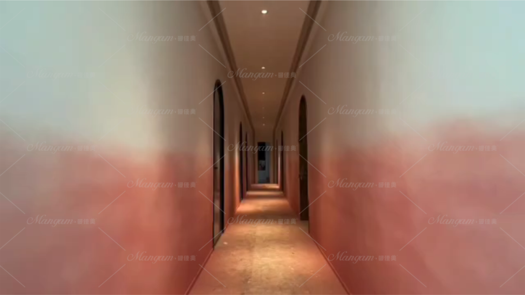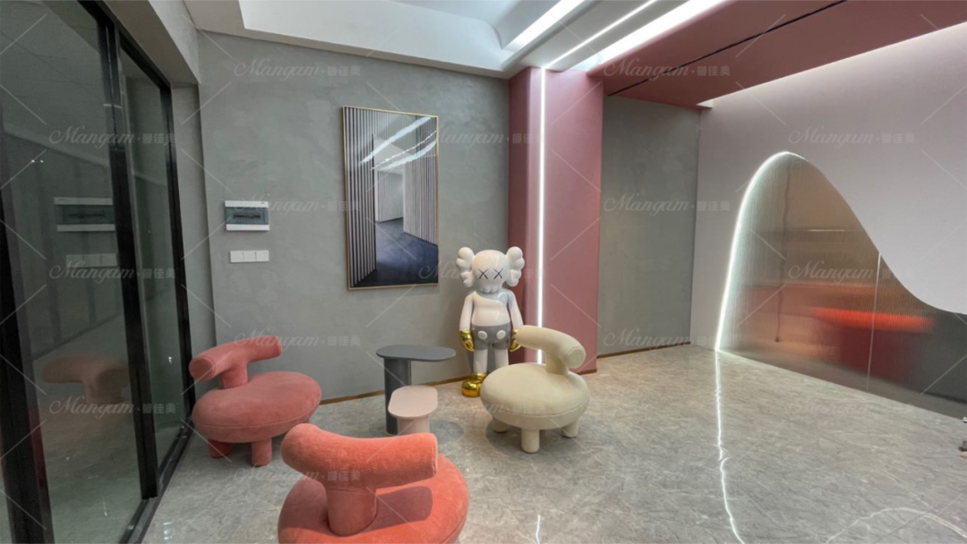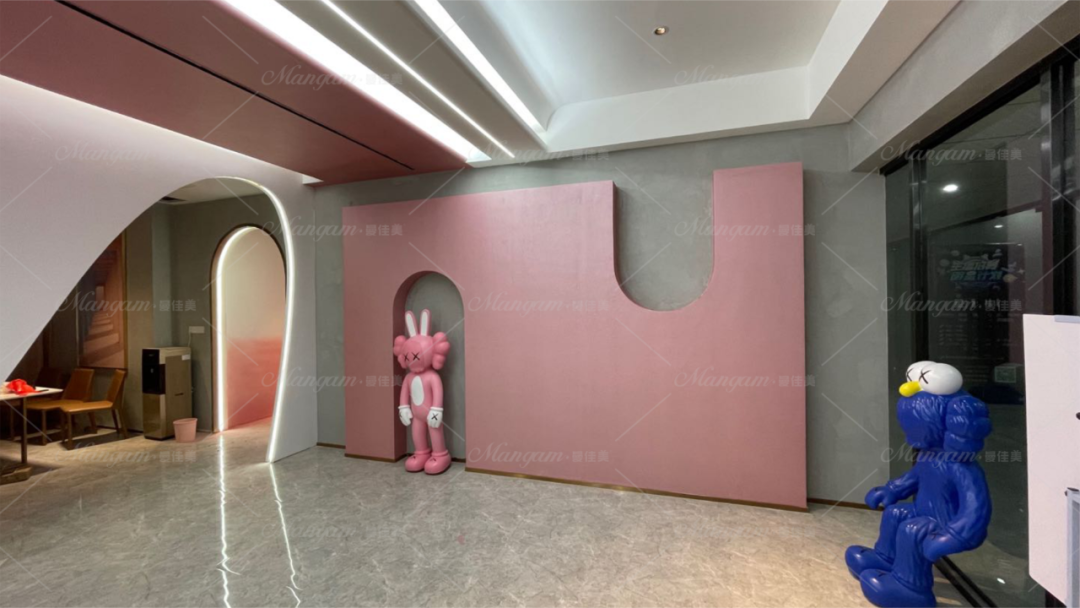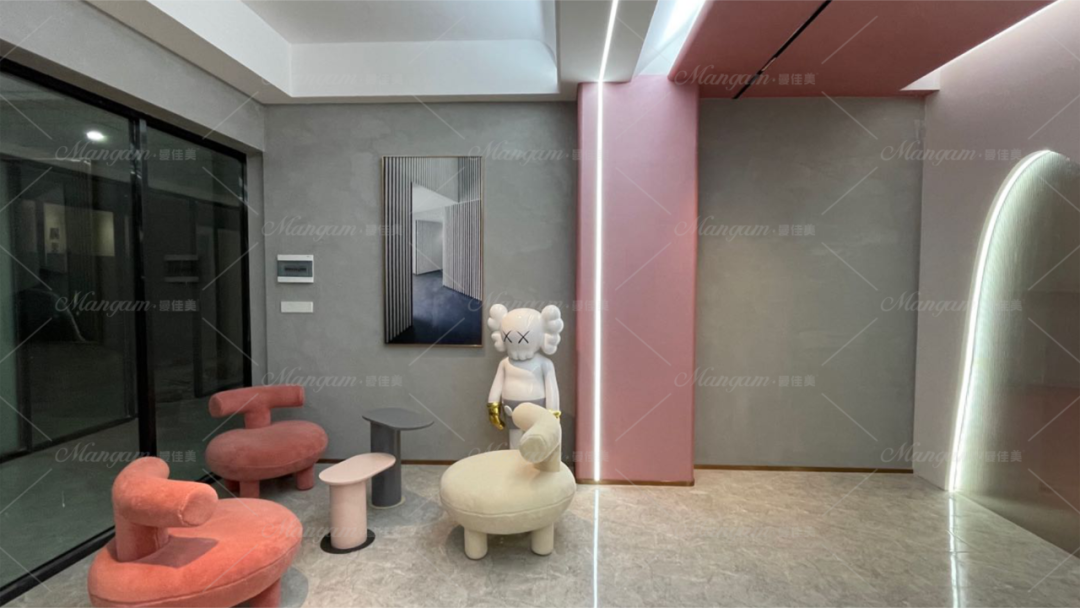 本次曼佳美藝術(shù)涂料分享案例運用了現(xiàn)今非常盛行的ins風(fēng)。ins風(fēng)最大的特點是以北歐簡約風(fēng)格家居為基調(diào),輔以設(shè)計感與調(diào)性的配飾物件,形成獨特的裝修風(fēng)格。在ins風(fēng)中,低飽和的粉色和灰色是常見的設(shè)計元素。冷色和暖色的色彩碰撞能帶給墻面不一樣的觀感。