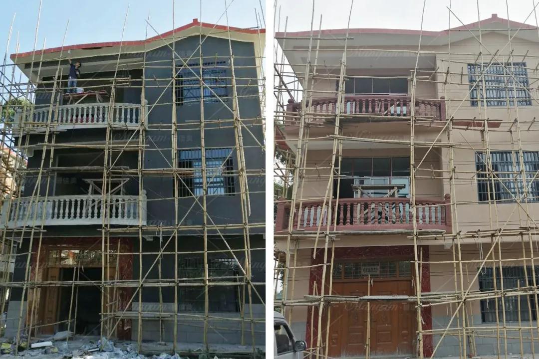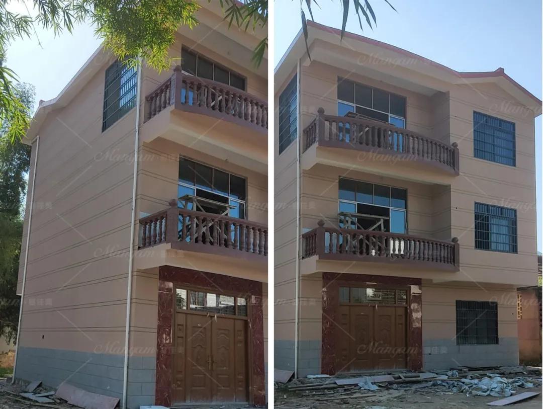 今天給大家分享來自桂林市陽朔縣渡頭村的私人別墅。其區(qū)別于傳統(tǒng)農(nóng)村自建房都是用瓷磚或者馬賽克裝飾外墻的,該私人別墅是使用曼佳美藝術(shù)涂料--鉆晶石藝裝飾外墻。
