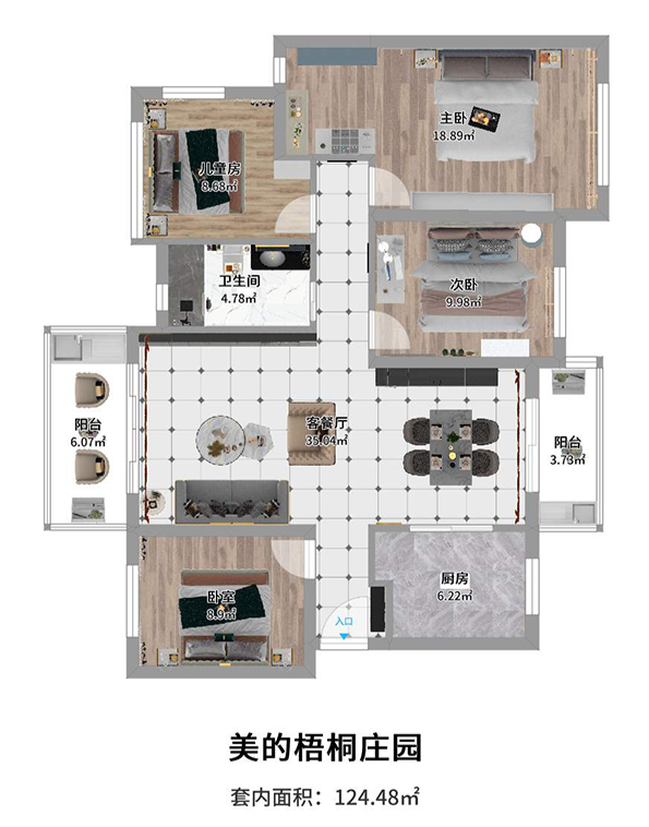 戶型:湖南省衡陽市珠暉區(qū)美的梧桐莊園124.48㎡