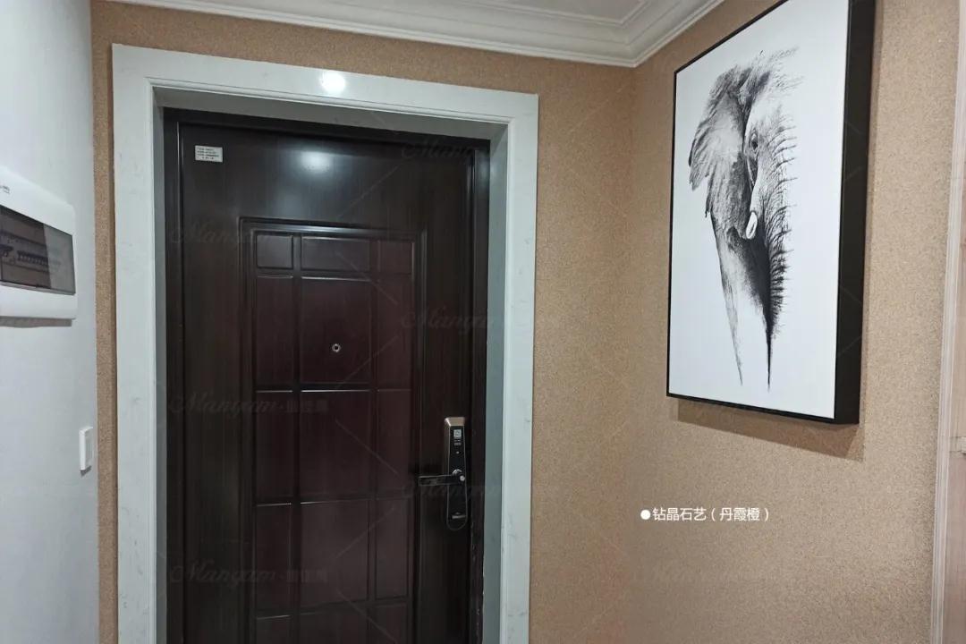 玄關(guān)作為進門第一眼的位置,利用裝飾畫、鉆晶石藝(丹霞橙)背景墻營造出舒適自然的感覺。