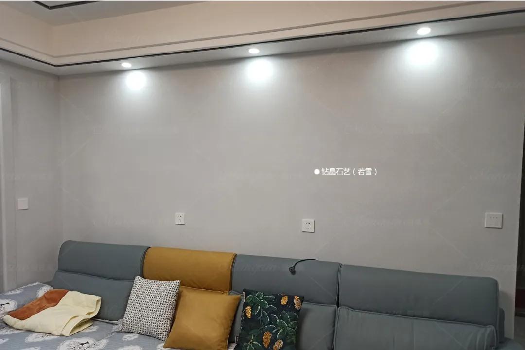 鉆晶石藝(若雪),其色調(diào)和材質(zhì)運用到沙發(fā)背景墻,給人一種素凈雅致的放松感。