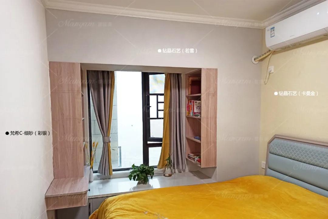 鉆晶石藝(卡曼金)作為臥室背景墻,為空間注入一絲柔和的氣息。