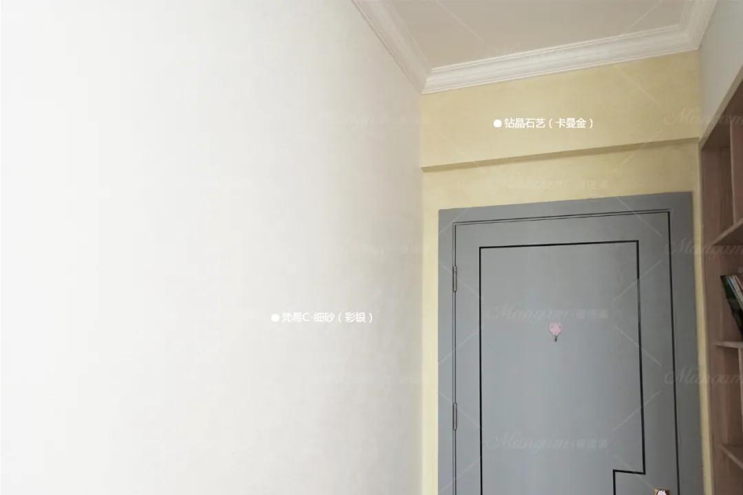 當鉆晶石藝(若雪)與梵希C-細砂(彩銀),兩個鄰近色系互相搭配在一起的時候,空間的高級感就會越發(fā)越明顯。