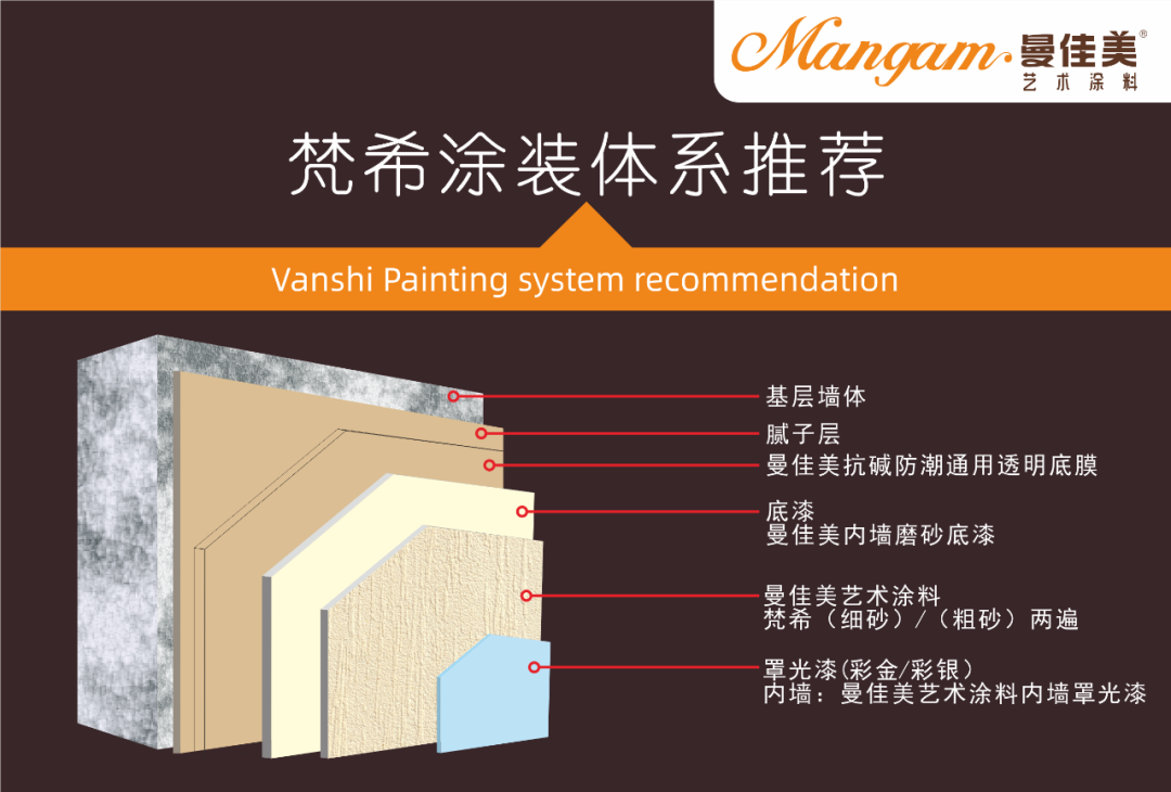 配套產(chǎn)品:梵希配套面釉(彩銀)、曼佳美通用底膜抗堿防潮封閉底漆、曼佳美藝術(shù)涂料磨砂底漆、曼佳美藝術(shù)涂料S底漆